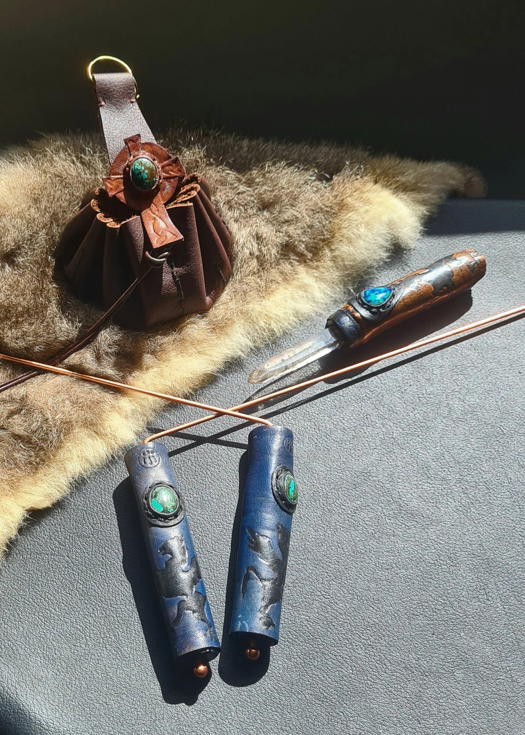 Tooled leather and gems in a bespoke design,